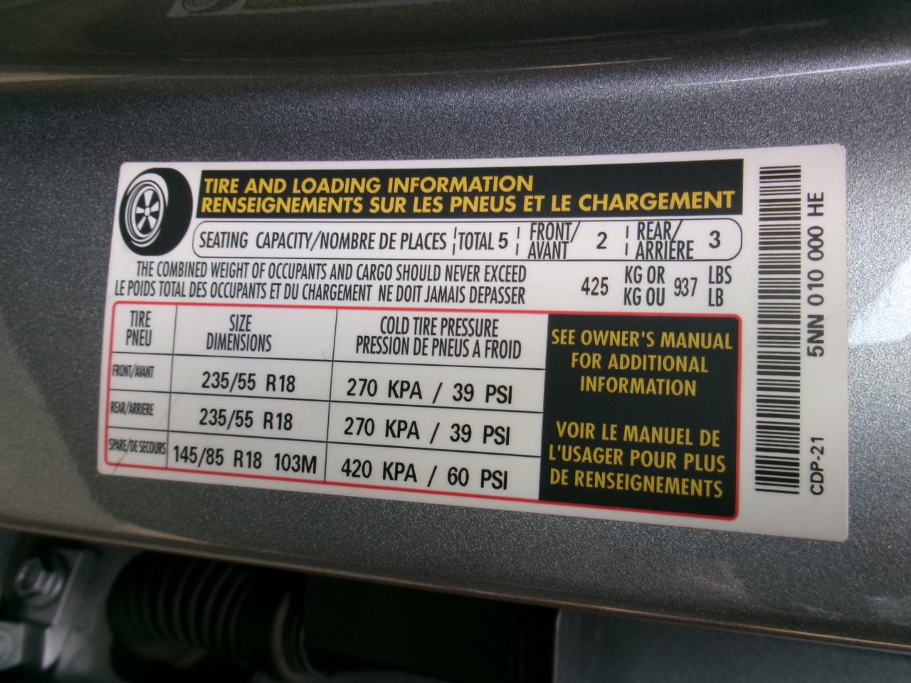 • Tires: 235/55R18 All-Season